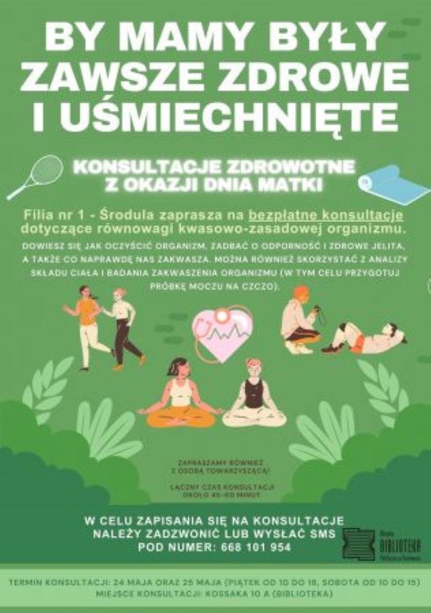 Już 24 oraz 25 maja 2024 Filia nr 1 – Środula, organizuje bezpłatne konsultacje zdrowotne, dotyczące równowagi kwasowo-zasadowej organizmu.