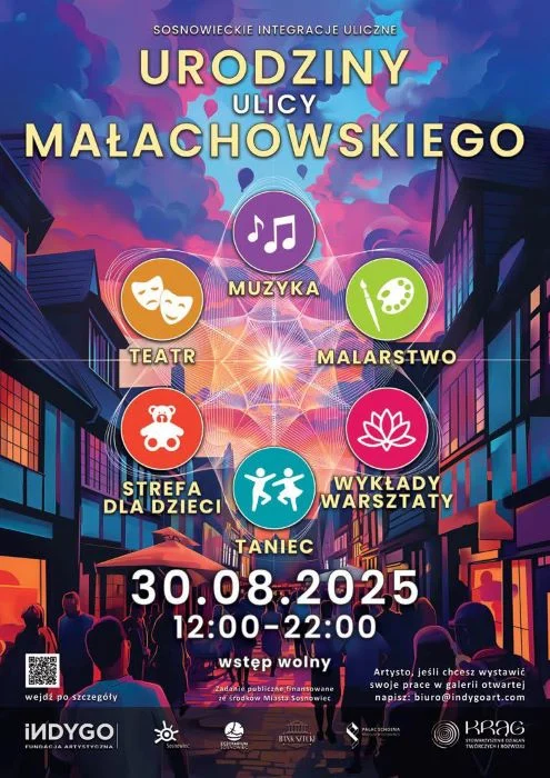 „Urodziny Ulicy Małachowskiego” to wyjątkowe wydarzenie kulturalno-społeczne, które od kilku lat niezmiennie tchnie nowe życie w serce Sosnowca. To czas, kiedy historyczna ulica Małachowskiego przeobraża się w pulsującą, otwartą scenę, galerię sztuki, przestrzeń warsztatową, wykładową, czy wyjątkowy plac zabaw dla dzieci zapraszając każdego do wspólnego świętowania kreatywności i społecznej integracji.