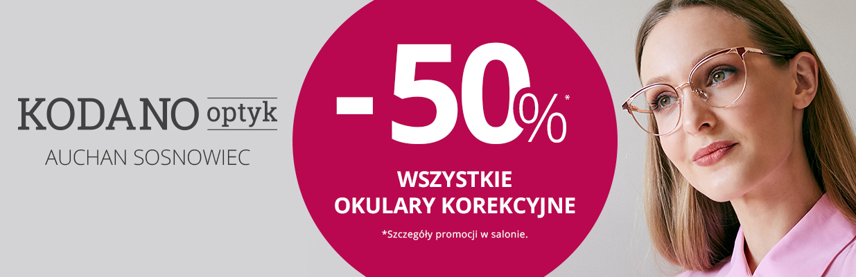 Teraz w salonie KODANO Optyk w Sosnowcu oraz w sklepie internetowym www.KODANO.pl można skorzystać z wyjątkowej promocji i kupić kompletne okulary korekcyjne (oprawki + soczewki okularowe) aż 50% taniej!