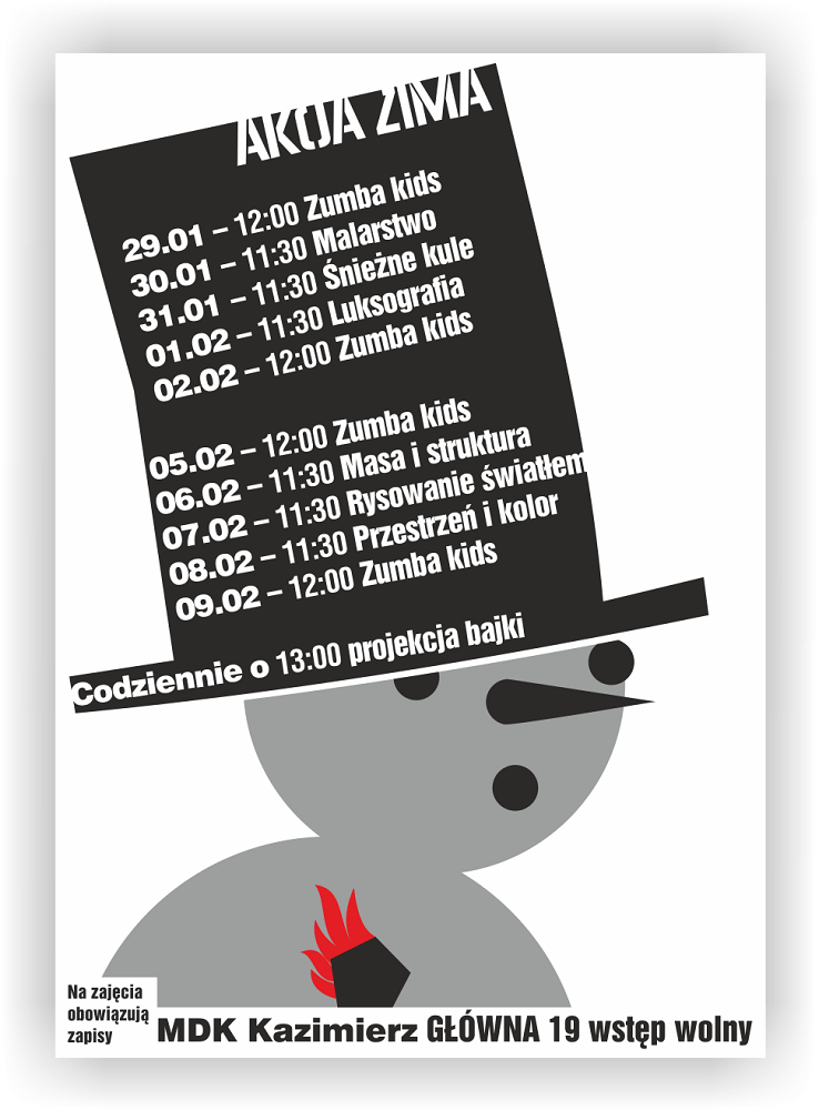 Miejski Dom Kultury "Kazimierz" serdecznie zaprasza dzieci i młodzież na zajęcia w ramach Akcji Zima 2018.
