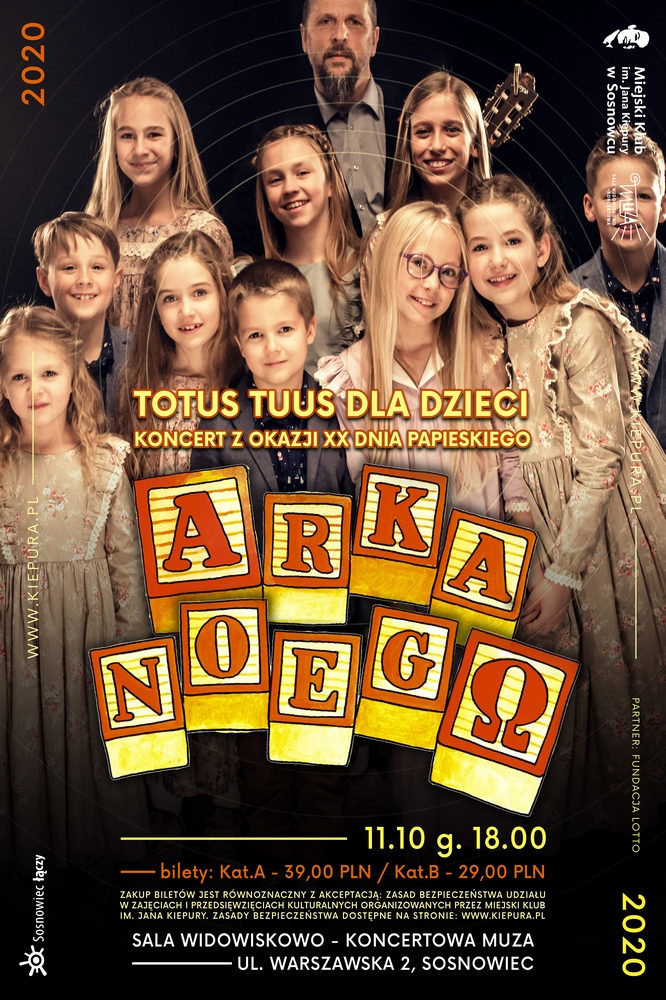 Już w niedzielę (11.10) o godzinie 18:00 w Sali Widowiskowo – Koncertowej MUZA w Sosnowcu, odbędzie się koncert Totus Tuus dla dzieci z okazji XX Dnia Papieskiego, podczas którego wystąpi zespół Arka Noego.