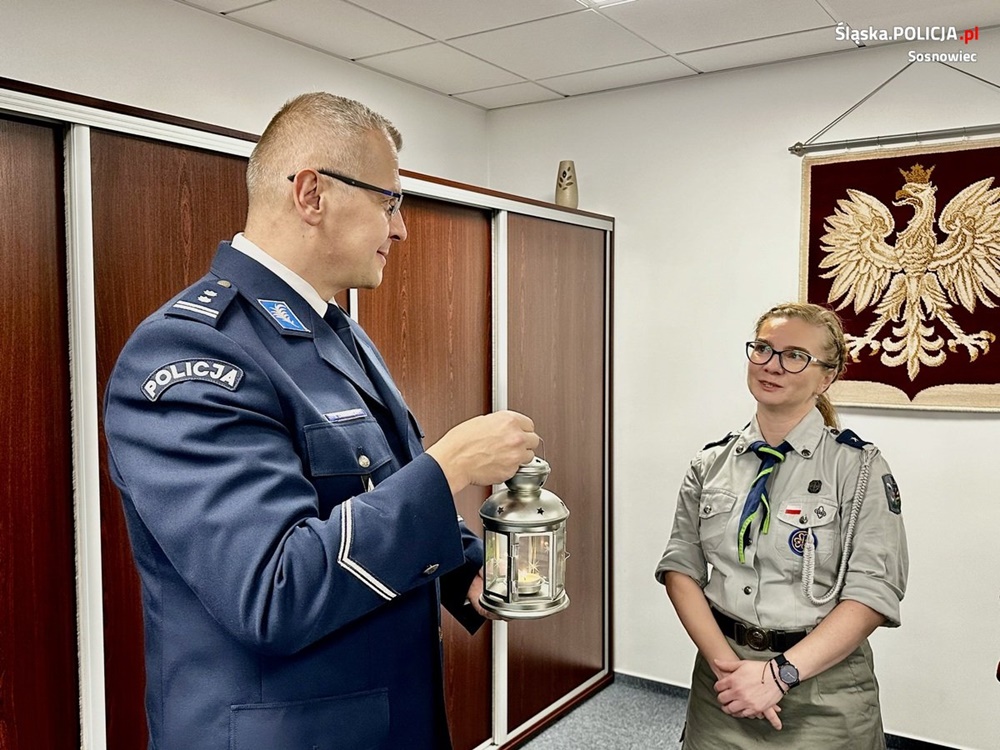 Wczoraj do sosnowieckiej komendy, z rąk przedstawicieli harcerstwa polskiego, trafiło Betlejemskie Światło Pokoju. Ten symbol miłości, ciepła i pokoju przyjął Komendant Miejski Policji w Sosnowcu, młodszyinspektor Sławomir Zagrobelny. W tym roku przesłanie towarzyszące akcji to hasło „Czyńmy pokój”.