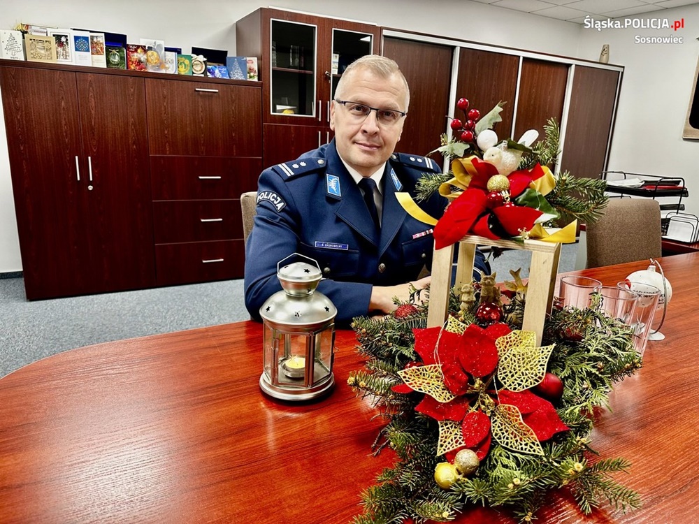 W imieniu policjantów, światełko odebrał Komendant Miejski Policji w Sosnowcu, młodszy inspektor Sławomir Zagrobelny.