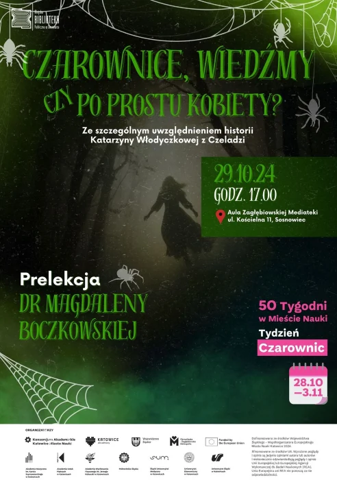 W ramach organizowanego we współpracy z Uniwersytetem Śląskim i Europejskim Miastem Nauki Katowice 2024 Tygodnia Czarownic, Zagłębiowska Mediateka serdecznie zaprasza 29 października o godz.17.00 do udziału w prelekcji dr Magdaleny Boczkowskiej „Czarownice, wiedźmy czy po prostu kobiety?”