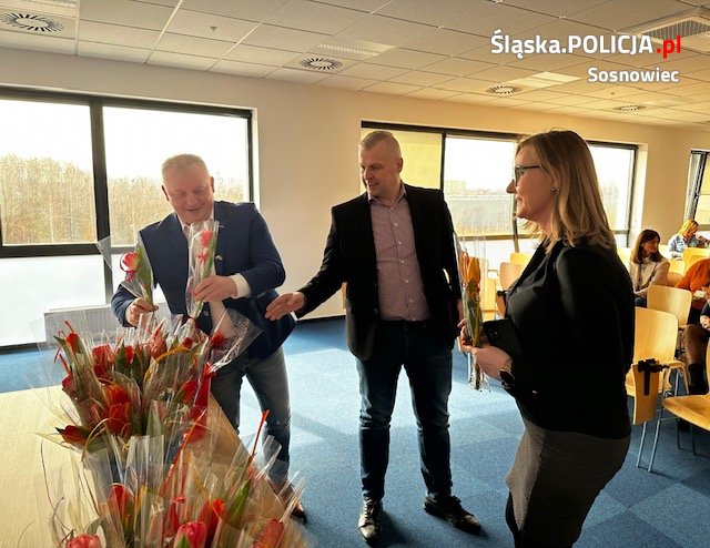 Przedwczoraj w tutejszej Komendzie odbyło się spotkanie zorganizowane z okazji Święta Kobiet. Komendant Miejski Policji w Sosnowcu podinsp. Sławomir Zagrobelny- Komendant Miejski Policji w Sosnowcu w asyście nadkom. Dariusza Kalarusa – Pierwszego Zastępcy Komendanta Miejskiego Policji w Sosnowcu oraz kierownictwa spotkał się w sali konferencyjnej z policjantkami i pracownicami cywilnymi. Wręczając kwiaty, złożył życzenia zdrowia, szczęścia oraz spełnienia marzeń tych osobistych, jak i zawodowych.