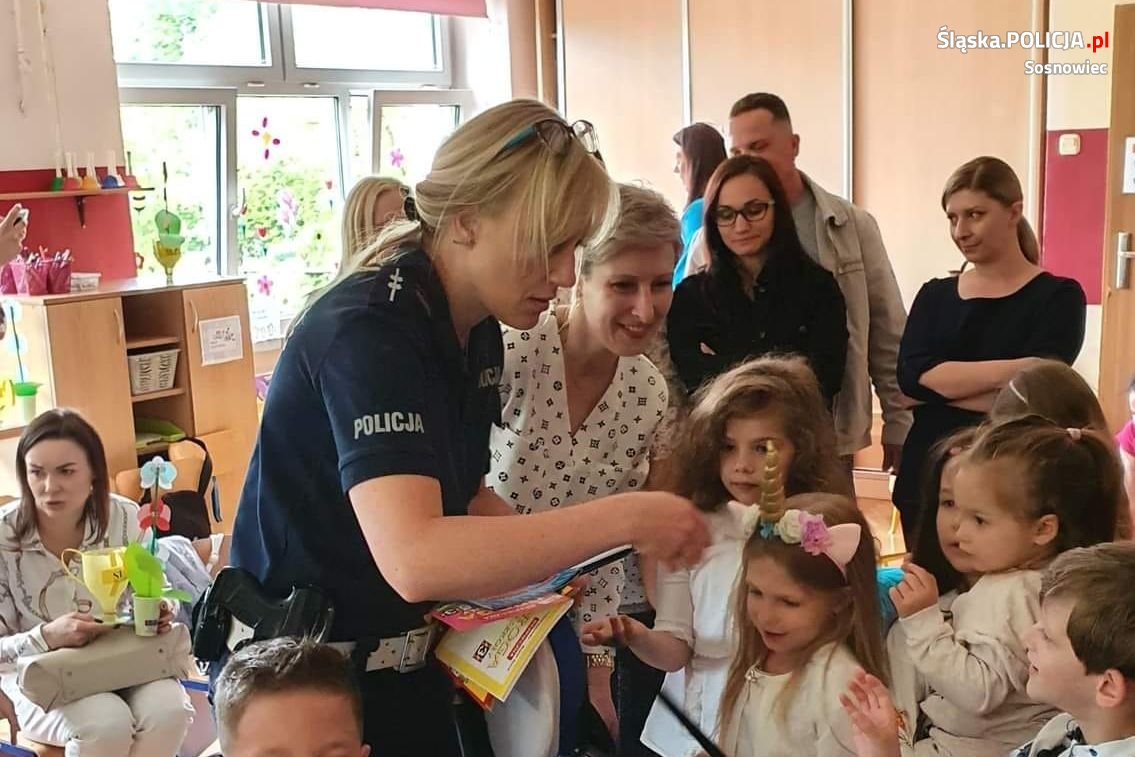 Każda okazja, żeby promować bezpieczne zachowania i wykształcać w dzieciach bezpieczne nawyki jest na wagę złota. Dzisiaj policjantka Wydziału Ruchu Drogowego, zaproszona na obchody Dnia Matki w Przedszkolu numer 29 w Sosnowcu, spotkała się z dziećmi i podczas wspólnej zabawy uczyła je takich właśnie bezpiecznych zachowań.