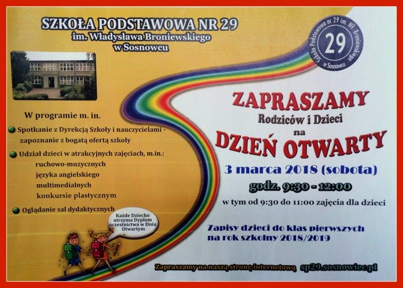 3 marca w godz.9.30.12.00 Szkoła Podstawowa nr 29 zaprasza na Dzień Otwarty.Więcej informacji poniżej:Tagi: