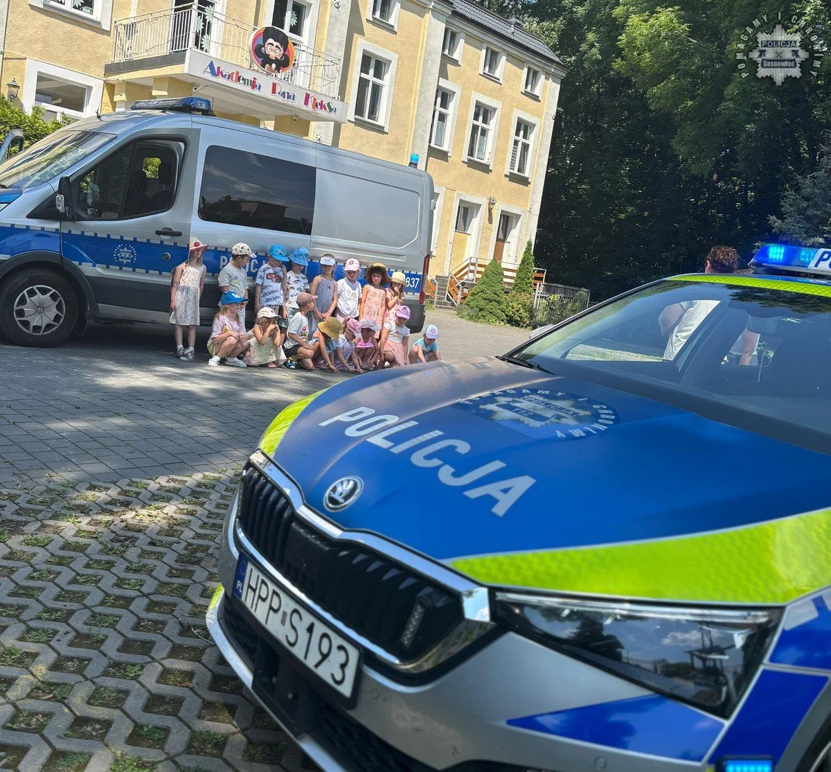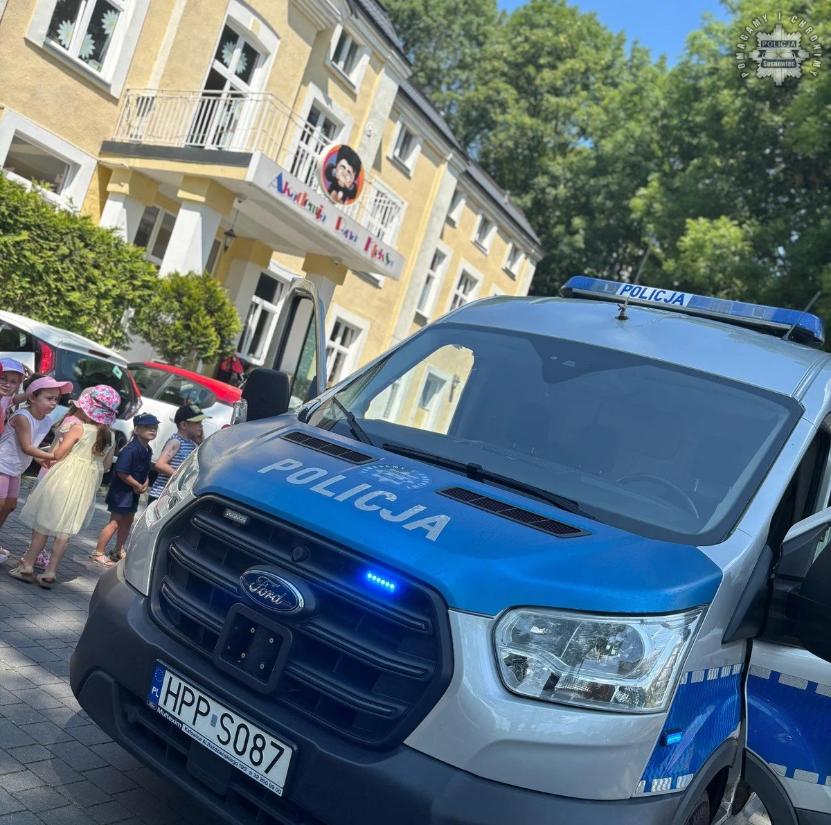 Z okazji Dnia Policjanta mundurowi Wydziału Ruchu Drogowego Komendy Miejskiej Policji w Sosnowcu odwiedzili dzieci z Niepublicznego Przedszkola Akademia Pana Kleksa przy ulicy Braci Mieroszewskich. Spotkanie odbyło się w ramach festynu zorganizowanego na terenie placówki i było nie tylko okazją do wspólnej zabawy, ale także ważną lekcją bezpieczeństwa.