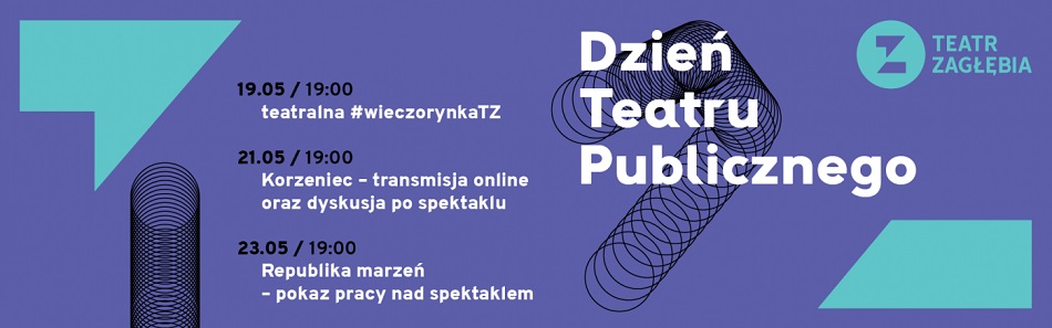 Dzień Teatru Publicznego w Teatrze Zagłębia rozpocznie się we wtorek 19 maja o godz. 19:00 wieczorynką w formie teatru cieni przygotowaną przez Małgorzatę Saniak-Grabowską. Dwa dni później – 21 maja o godz. 19:00 – odbędzie się premiera transmisji spektaklu „Korzeniec” na podstawie książki Zbigniewa Białasa w adaptacji Tomasza Śpiewaka i reżyserii Remigiusza Brzyka. Po spektaklu kameralną dyskusję dla wszystkich, którzy chcieliby porozmawiać o spektaklu, poprowadzi edukatorka teatralna, Agata Kędzia.