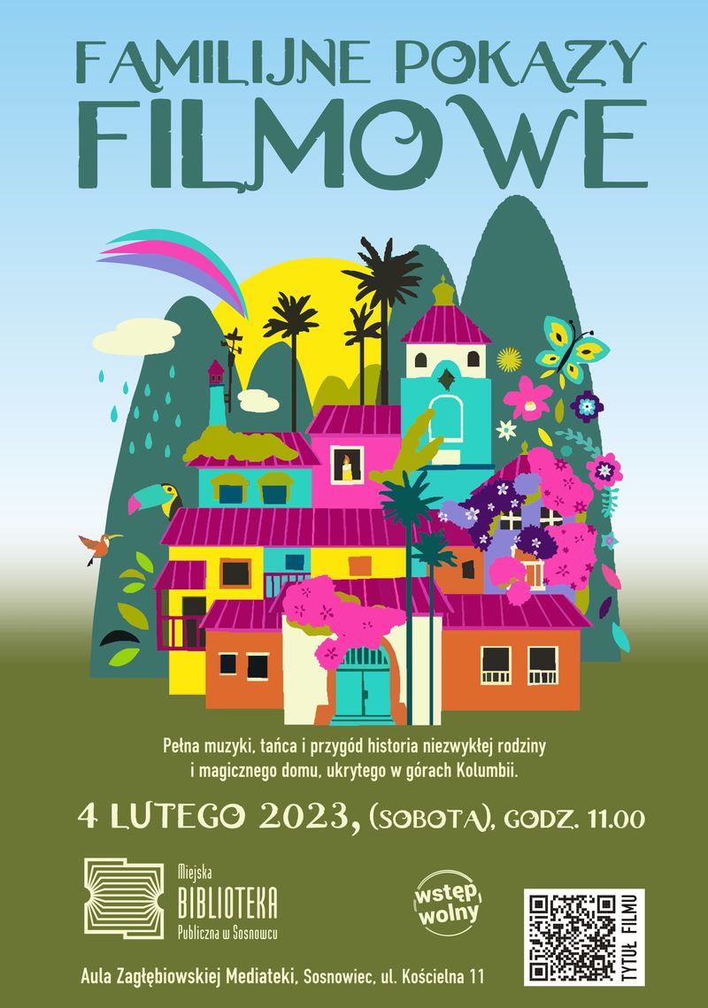 Już 4 lutego 2023 (sobota) o godz. 11.00 Zagłębiowska Mediateka serdecznie zaprasza na Familijny Pokaz Filmowy. Na dzieci wraz z osobami towarzyszącymi, w Auli Zagłębiowskiej Mediateki przy ul. Kościelnej 11 w Sosnowcu, czekać będzie pełna muzyki, tańca i przygód historia niezwykłej rodziny i magicznego domu, ukrytego w górach Kolumbii.