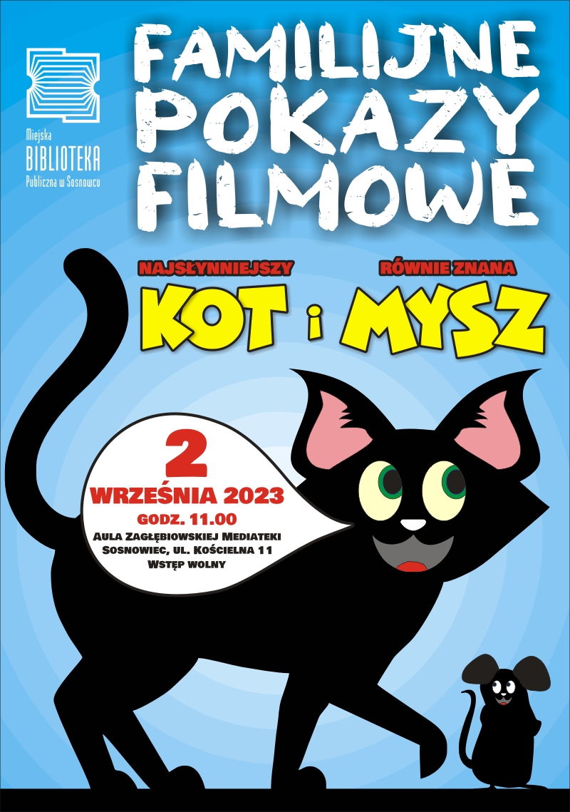 Na dzieci wraz z osobami towarzyszącymi, w Auli Zagłębiowskiej Mediateki przy ul. Kościelnej 11 w Sosnowcu, czekać będzie pełna zwrotów akcji nowojorska heca z najsłynniejszą myszą i najbardziej znanym kotem wszech czasów w rolach głównych! Wstęp wolny.