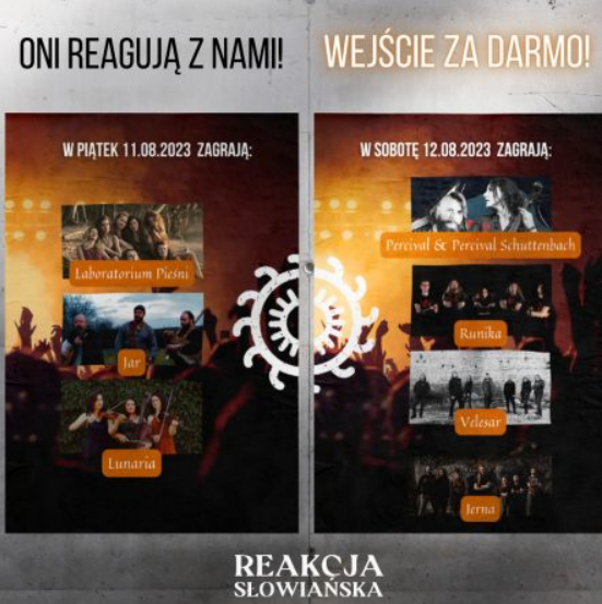 Jak mówią organizatorzy wydarzenia: “Reakcja Słowiańska opanuje Zagłębie, ale nie poprzestaniemy na tym!”. Podczas festiwalu wysłuchacie 8 koncertów znanych i nagradzanych zespołów folkowych, folkrockowych i folkmetalowych, w tym wysłuchacie składu znanego z tworzenia muzyki do gry Wiedźmin 3 – zespółu Percival.