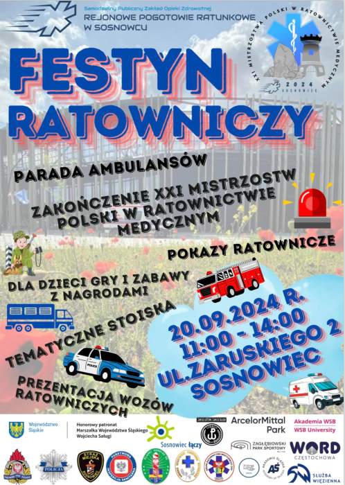 20 września na terenie parkingu Zagłębiowskiego Parku Sportowego odbędzie się Festyn Ratowniczy, kórego organizatorem jest SP ZOZ Rejonowe Pogotowie Ratunkowe w Sosnowcu.