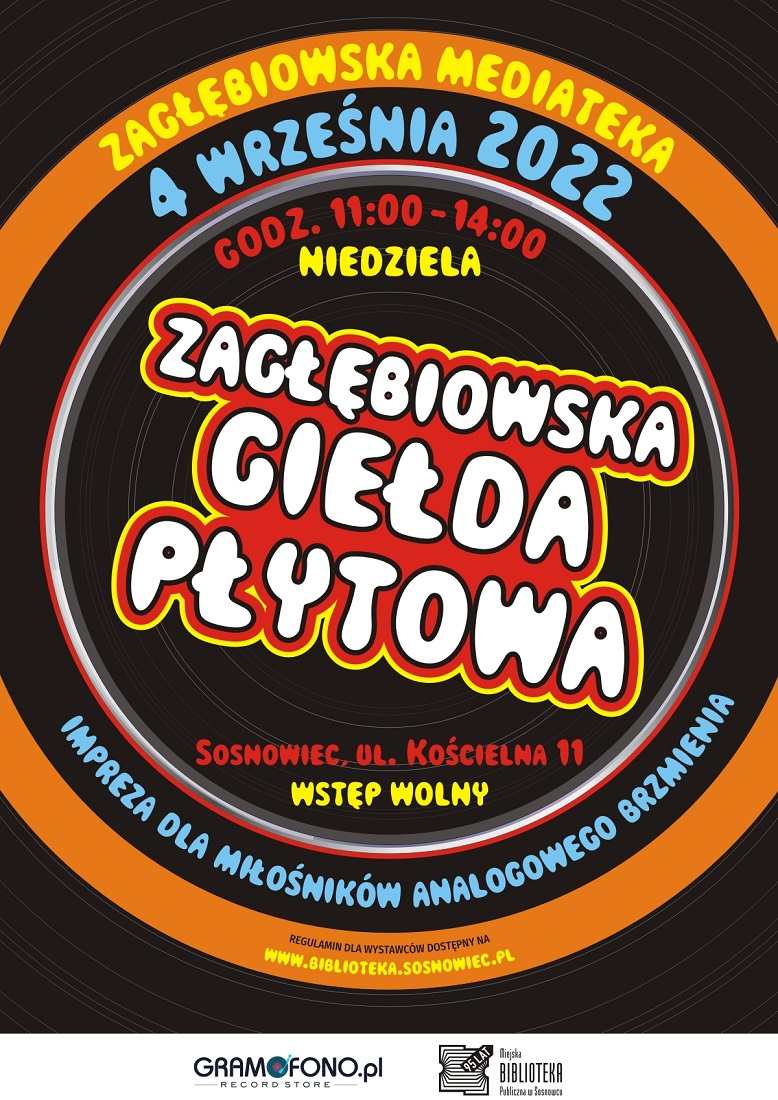 Po wakacyjnej przerwie, firma Gramofono.pl powraca do nas z muzyczną giełdą! Zaproszeni zostali wszyscy pasjonaci muzyki, melomani i kolekcjonerzy w niedzielę 4 września 2022 w godz. 11.00-14.00 do Zagłębiowskiej Mediateki na kolejną odsłonę Zagłębiowskiej Giełdy Płytowej. Wstęp wolny.