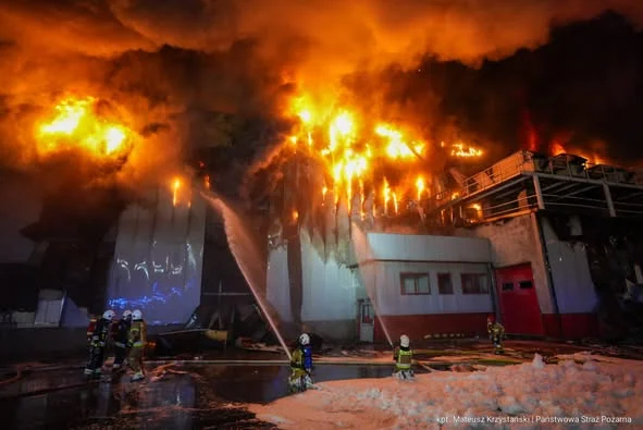 Pożar hali produkcyjnej w Sosnowcu – strażacy walczyli przez całą noc