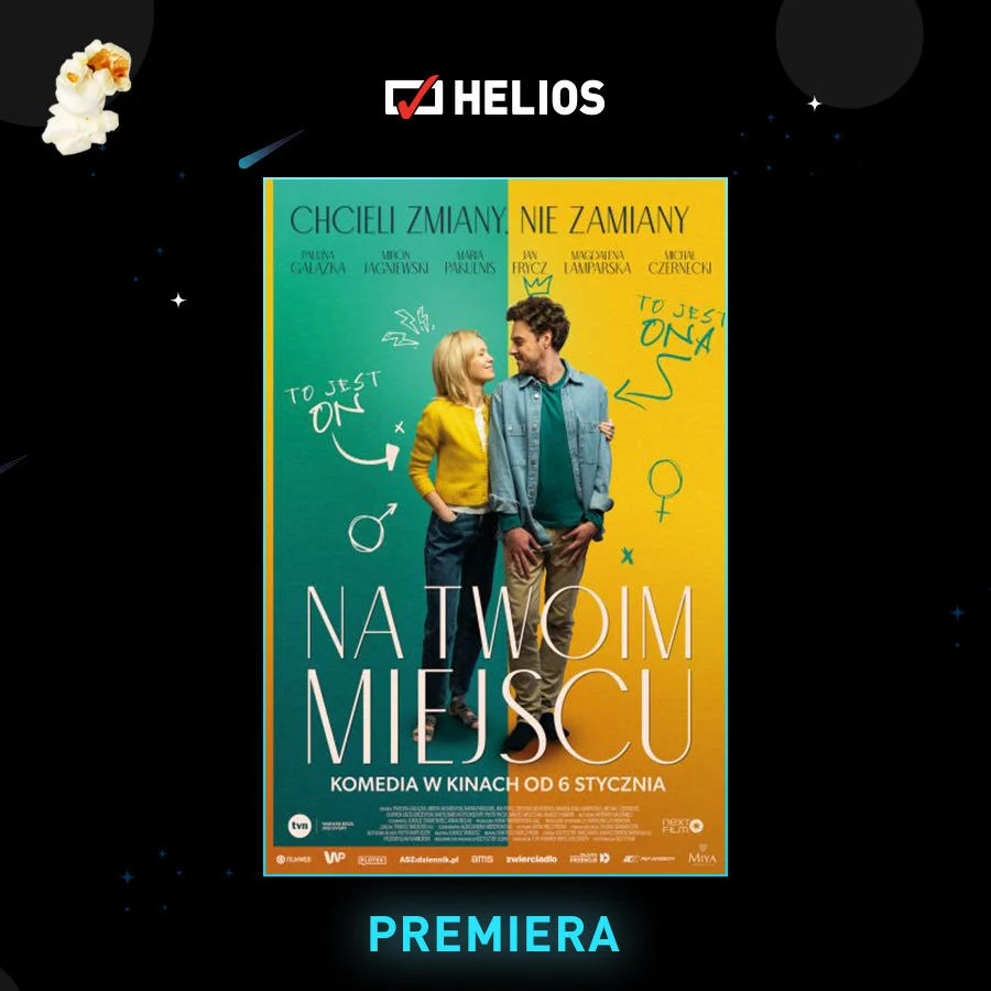 W tym tygodniu widzowie kin Helios będą mogli skusić się na premierowe pokazy pozytywnej komedii „Na twoim miejscu”. Film opowiada o młodym, atrakcyjnym małżeństwie. Wydaje się, że powinni być szczęśliwi, a jednak są na skraju rozwodu. Każdy dzień spędzają na kłótniach. Aż do poranka, od którego muszą współpracować jak jeszcze nigdy dotąd. A wszystko przez… zamianę ciał. Od teraz każde z nichmusi przejąć obowiązki tego drugiego i stawić czoła problemom, o których istnieniu nie miało pojęcia! Czy to sprawi, że spojrzą na siebie inaczej i nauczą się empatii?