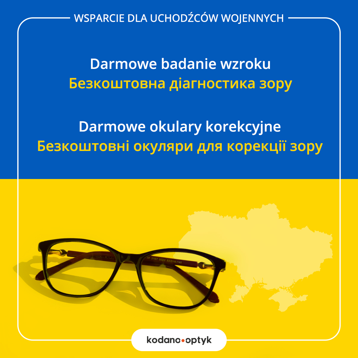 W związku z tragiczną sytuacją w Ukrainie sieć salonów KODANO Optyk zaprasza ukraińskich uchodźców wojennych do swoich salonów KODANO Optyk w całej Polsce na BEZPŁATNE badanie wzroku oraz DARMOWE wykonanie okularów korekcyjnych dla potrzebujących.