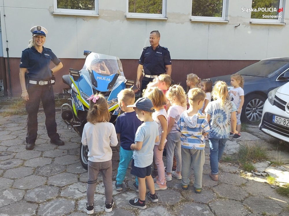 W miniony czwartek sosnowieccy policjanci odwiedzili maluchy z Przedszkola Miejskiego nr 19. Podczas spotkania przedszkolaki mogły z bliska przyjrzeć się motocyklowi i radiowozowi służbowemu. Mundurowi przypomnieli najmłodszym o podstawowych zasadach bezpieczeństwa.