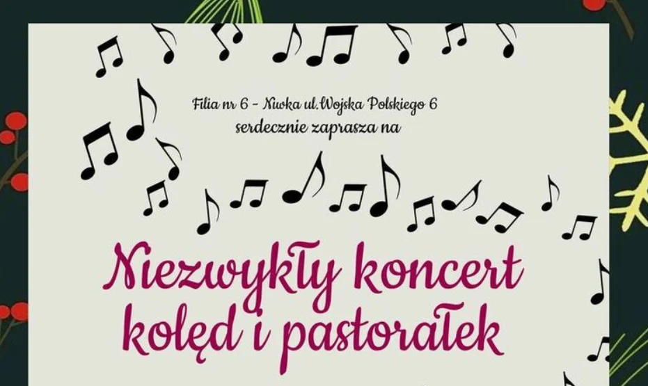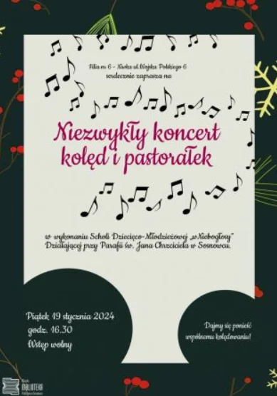 Filia nr 6 – Niwka Miejskiej Biblioteki Publicznej w Sosnowcu serdecznie zaprasza 19 stycznia na niezwykły koncert kolęd i pastorałek.