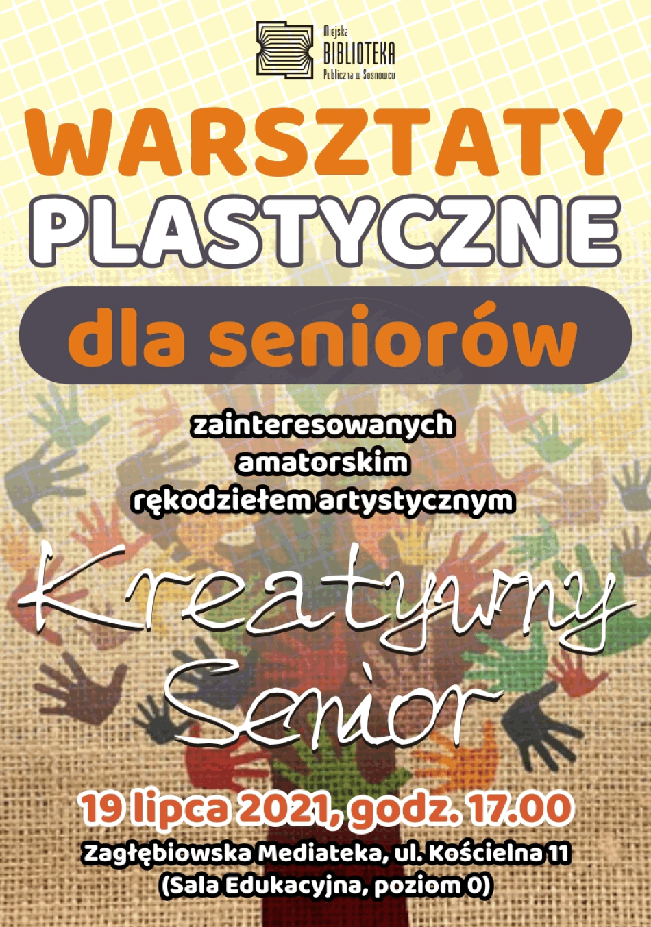 Miejska Biblioteka Publiczna w Sosnowcu serdecznie zaprasza wszystkich Kreatywnych Seniorów na kolejne warsztaty rękodzieła. Odbędą się one 19 lipca 2021 o godz. 17.00 w Ogrodzie Zagłębiowskiej Mediateki (ul. Kościelna 11).