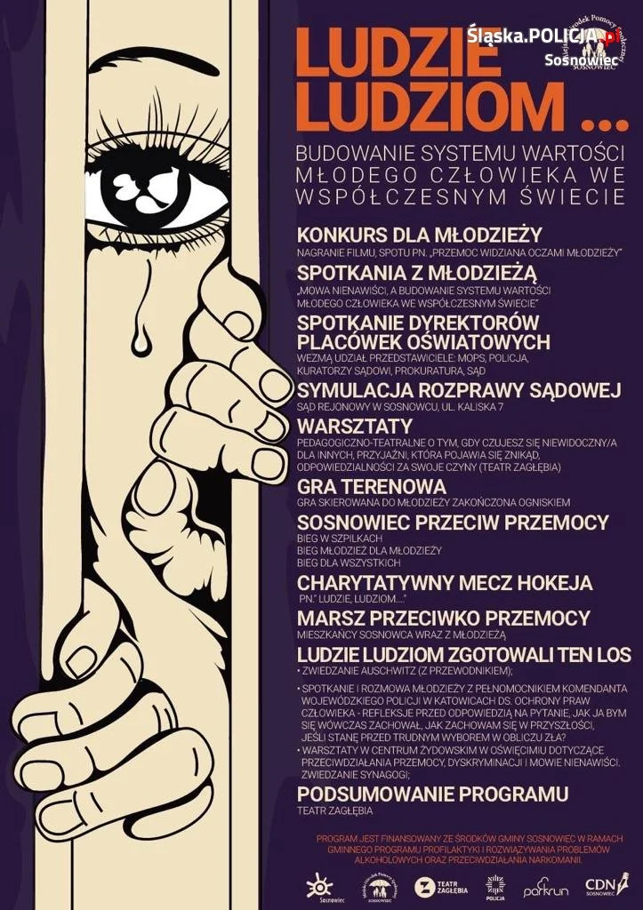 Miejski Ośrodek Pomocy Społecznej w Sosnowcu wraz z Komendą Miejską Policji w Sosnowcu, Teatrem Zagłębia, Centrum Doskonalenia Nauczycieli oraz Parkrun – Park Miejski, przy współudziale Sądu Rejonowego w Sosnowcu realizuje projekt partnerski pn. „Ludzie ludziom… – budowanie systemu wartości młodego człowieka we współczesnym świecie.