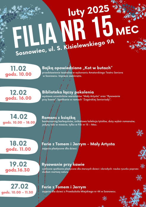 Luty w Filii nr 15 – Mec Miejskiej Biblioteki Publicznej w Sosnowcu zapowiada się bardzo interesująco! Zachęcamy do zapoznania się ze szczegółami programu.