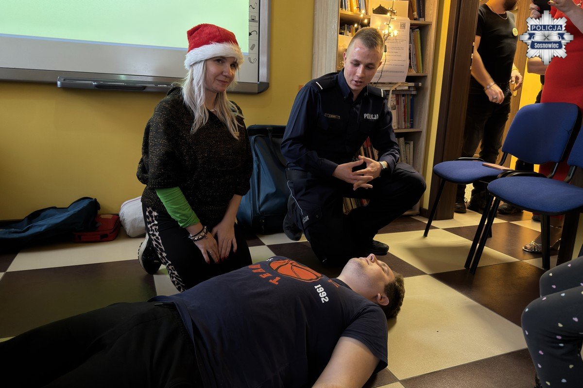 Na zakończenie spotkania przeprowadzono pokaz z zakresu udzielania pierwszej pomocy. Starszy posterunkowy Bartłomiej Mysłek zaprezentował m.in., jak prawidłowo zachować się w przypadku odnalezienia osoby nieprzytomnej, w jaki sposób prawidłowo ocenić jej stan i jak odpowiednio zareagować.