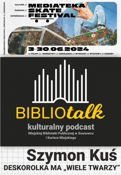 W najnowszym odcinku podcastu Bibliotalk, prowadzonego przez Tomka Szymczyka, zapraszamy na fascynującą rozmowę z Szymonem Kusiem, koordynatorem projektu Mediateka Skate Festival. To unikalne wydarzenie, trwające cały miesiąc, zagłębia się w świat deskorolkarzy i otwiera go dla wszystkich. Zrozmowy dowiemy się, skąd wzięła się deskorolka i jakie są jej początki. Odkryjemy także, czy deskorolka to tylko sport, czy może styl życia, oraz czy każdy może spróbować swoich sił na desce. Szymon Kuś opowie o bogatym programie Mediateka Skate Festival. W trakcie festiwalu odbędą się m.in. rozmowy z ludźmi ze świata deskorolki, gdzie będzie można posłuchać inspirujących historii i poznać pasjonatów tego sportu. Nie zabraknie również pokazów filmów o tematyce sportowej. Odwiedzający bibliotekę mogą również obejrzeć dwie megaciekawe wystawy z deskorolką w roli głównej.