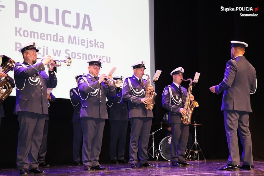 Po zakończeniu części oficjalnej uroczystej zbiórki zaproszeni goście wysłuchali występu Orkiestry Komendy Wojewódzkiej Policji w Katowicach.