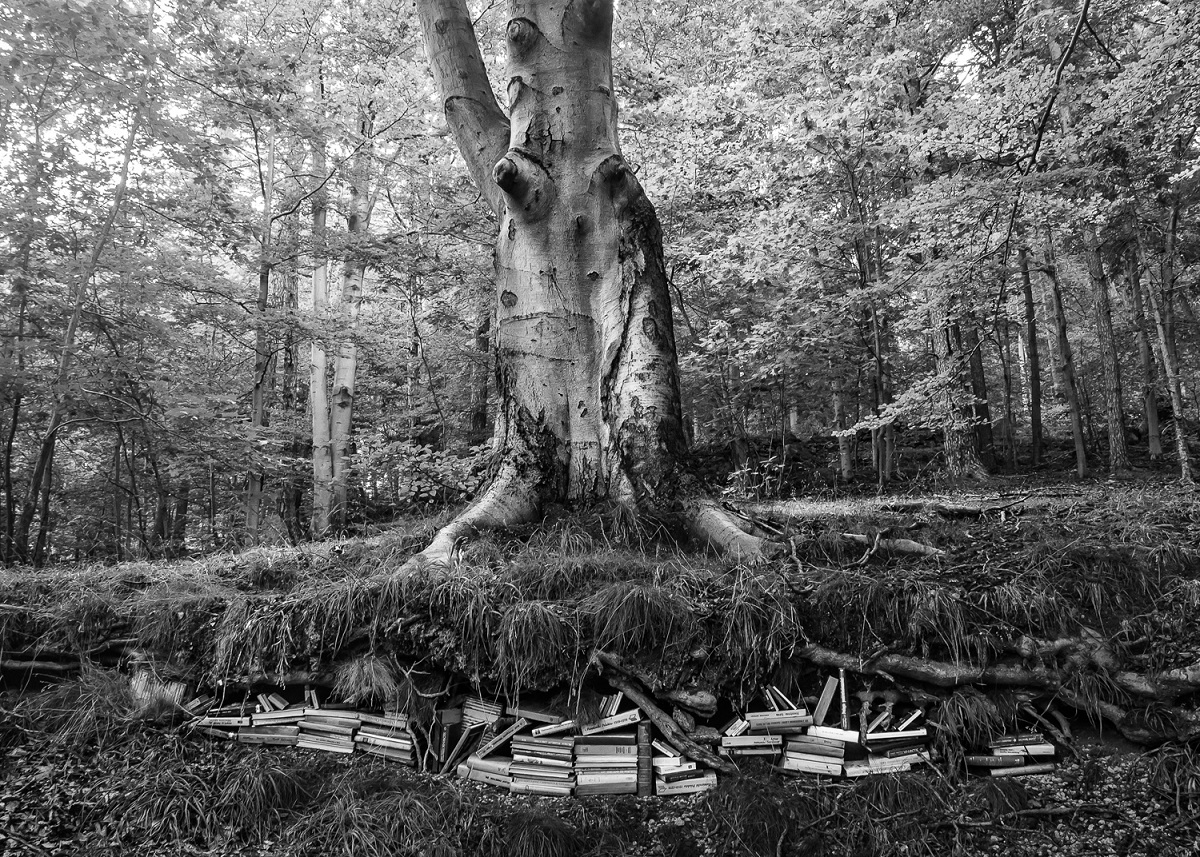 „Papierowe krajobrazy” są wynikiem wizji, które zaczęły się pojawiać, ponieważ zafascynowały mnie książki i wszystko, co z nimi związane. Biblioteka zawsze pobudzała moją wyobraźnię, ekscytowała, a figura obsesyjnego bibliofila była najbliższą mi postawą. Dzięki przenikaniu się fotografii, instalacji artystycznej z krajobrazem i obiektem, jakim jest książka, staję się kreatorem nowych rzeczywistości na styku mediów. Mam nadzieję, że widz zaczyta się w stworzonych przeze mnie wizerunkach, które przecież nie są wcale tak nierealne. A może wszystko oparte jest na książkach? Może wszechświat jest wielką księgą z nieskończoną ilością stron?