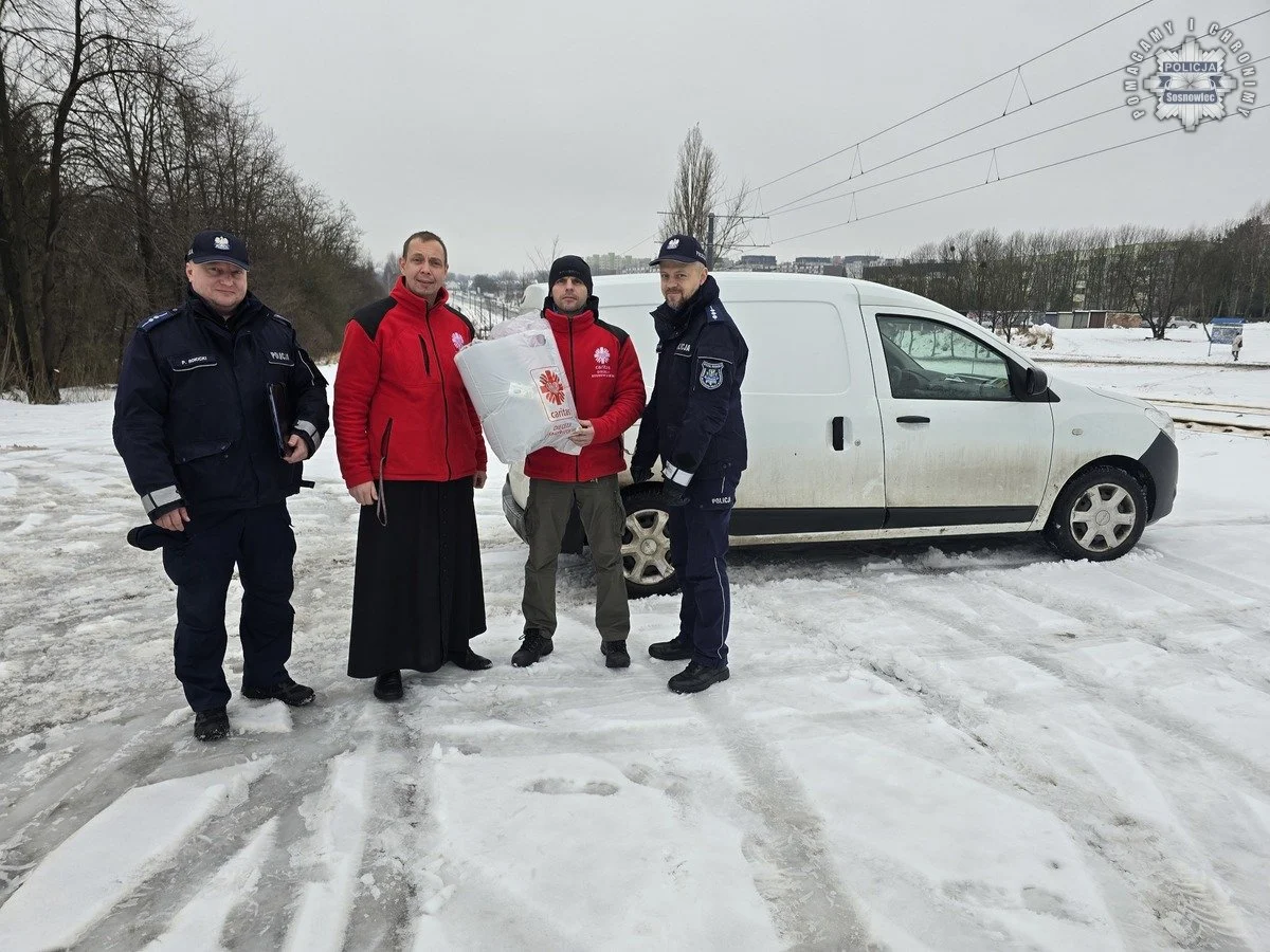 Policjanci intensyfikują kontrole miejsc, w których mogą szukać schronienia, takich jak pustostany, ogródki działkowe czy klatki schodowe. Aby pomóc najbardziej potrzebującym, dzielnicowy z komisariatu III, st.asp. Szymon Czysz z Wydziału Prewencji Komendy Wojewódzkiej Policji w Katowicach oraz ksiądz Łukasz Gładki, Zastępca Dyrektora Caritas Diecezji Sosnowieckiej, odwiedzili rodzinne ogródki działkowe w Sosnowcu, gdzie wręczyli osobie potrzebującej zestaw pomocowy. Oprócz przekazania niezbędnych przedmiotów, mundurowi i przedstawiciele Caritas informowali o dostępnych miejscach, w których można uzyskać wsparcie.
