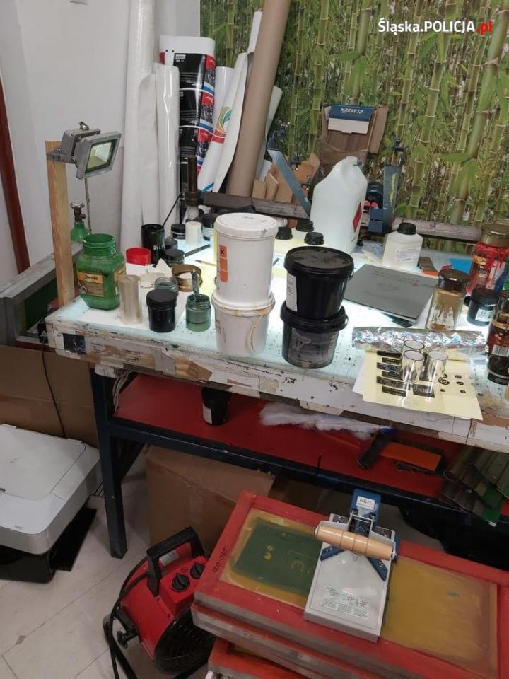 Ponadto policjanci namierzyli i zlikwidowali ośrodek fałszerski w Sosnowcu, w którym mężczyźni podrabiali dokumenty. Kryminalni wraz z policyjnymi specjalistami z laboratorium kryminalistycznego znaleźli tam przedmioty służące do ich fałszowania. Zabezpieczyli matryce pieczęci, siatki do sitodruków, folie opalizujące, karty polimerowe, klisze, farby UV oraz fragmenty przywłaszczonych dowodów osobistych.