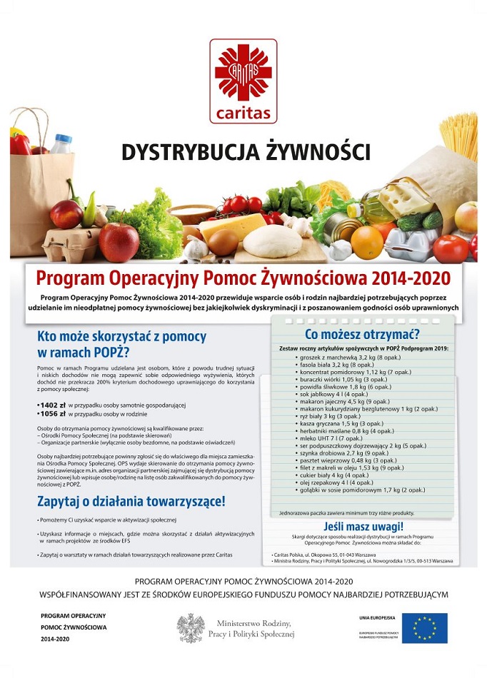 Instytucją Zarządzającą w ramach Programu jest Ministerstwo Rodziny Pracy i Polityki Społecznej, a Instytucją Pośredniczącą Agencja Rynku Rolnego. Program Operacyjny Pomoc Żywnościowa 2014-2020, współfinansowany jest ze środków Unii Europejskiej w ramach Europejskiego Funduszu Pomocy Najbardziej Potrzebującym.