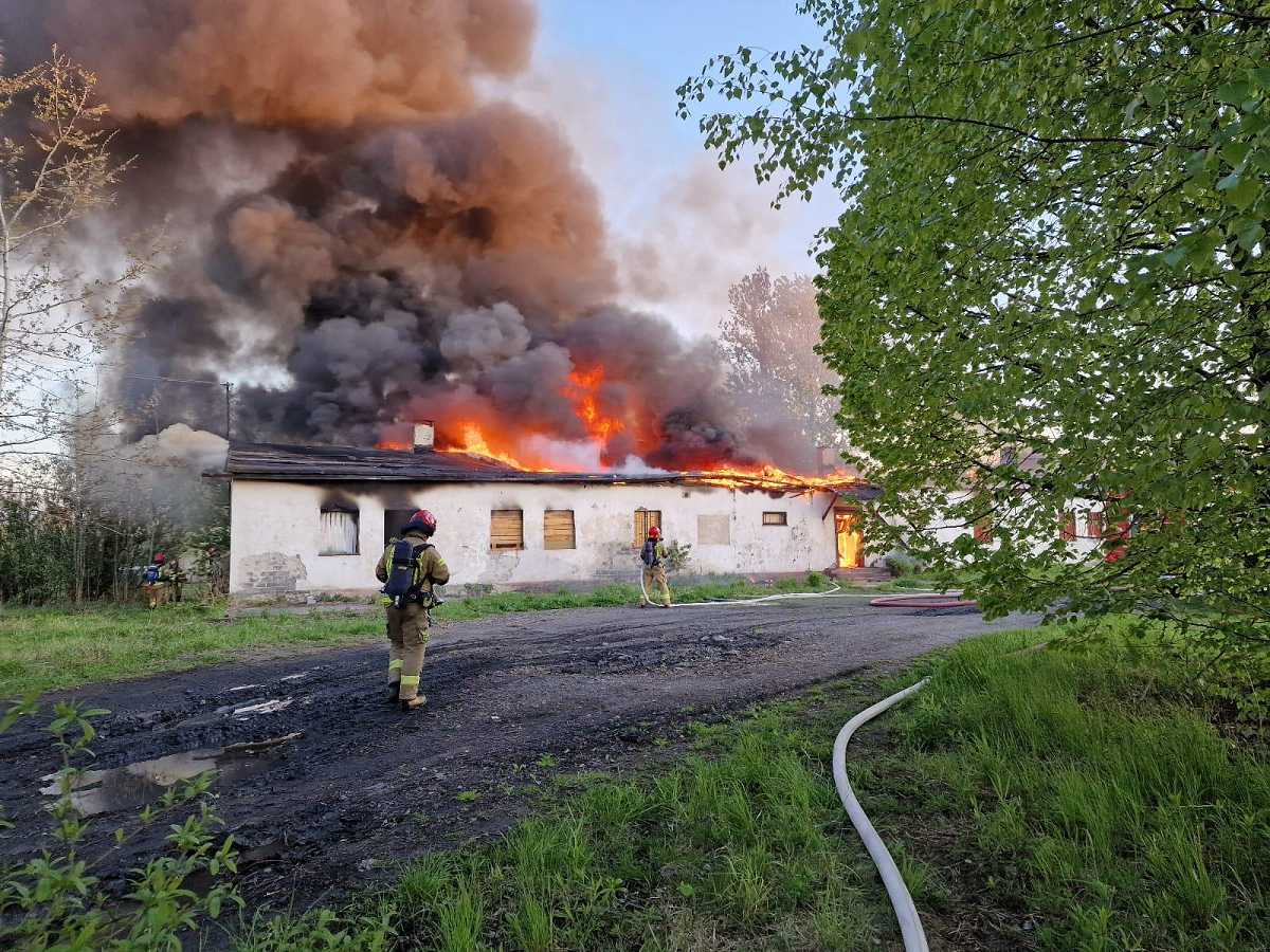 W środę 10 maja o godzinie 5:00 do sosnowieckich strażaków dotarło zgłoszenie o pożarze budynku parterowego przy ul. Anki Kowalskiej 31. Kiedy strażacy przyjechali na miejsce, budynek prawie cały był objęty pożarem. Był to pustostan o wymiarach ok. 40 x 15 x 4m.