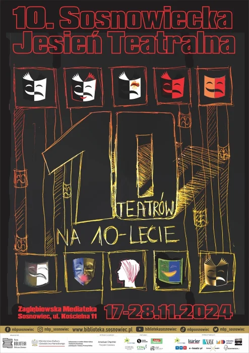 Miejska Biblioteka Publiczna w Sosnowcu serdecznie zaprasza do udziału w jubileuszowej – 10. Sosnowieckiej Jesieni Teatralnej „10 TEATRÓW NA 10-LECIE”. Start już w niedzielę 17 listopada 2024!
