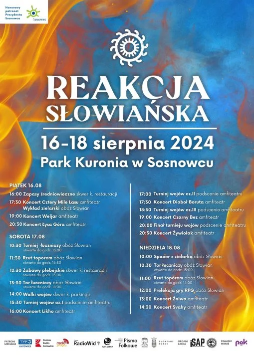 Przystanek Otwartej Kultury zaprasza od 16 do 18 sierpnia do Parku im. J. Kuronia na Festiwal Reakcja Słowiańska 2024.