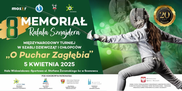 VIII Memoriał im. Rafała Sznajdera to zarazem Międzynarodowy Turniej w Szabli Dziewcząt i Chłopców. W tym roku odbędzie się w sobotę 5 kwietnia 2025 r. w hali przy ul. Żeromskiego w Sosnowcu. Początek godz. 11.00.