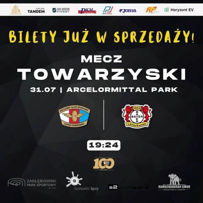 Można już kupować bilety na mecz z okazji 100-lecia Czarnych Sosnowiec. Rywalem piłkarek z Sosnowca będzie niemiecki Bayer Leverkusen.