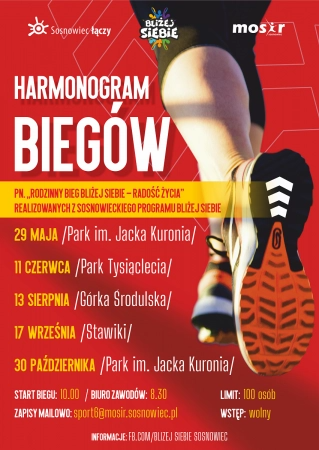 Biegi realizowane są z sosnowieckiego Programu Bliżej Siebie. Startujemy o godz.10.00. Biuro zawodów czynne jest od godz.8.30.