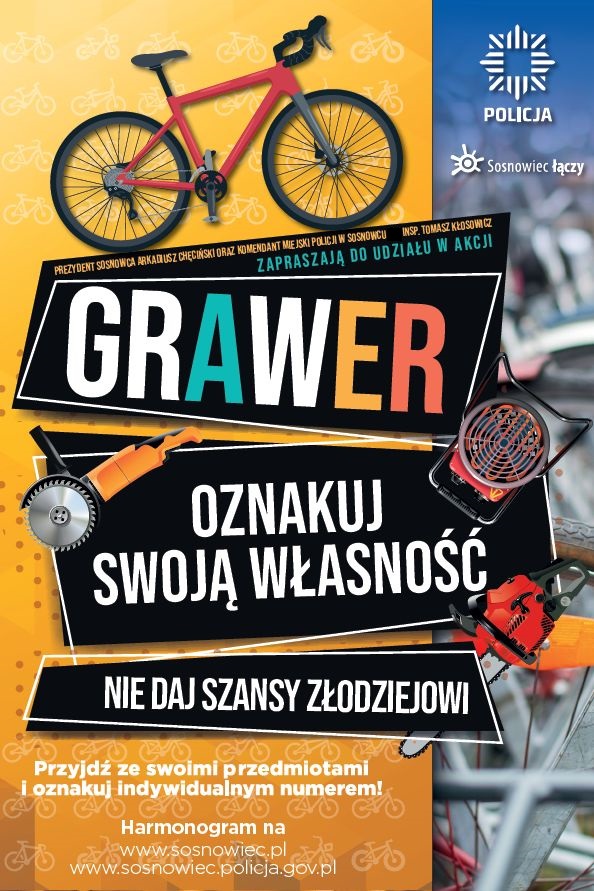 Sosnowieccy policjanci rozpoczynają wielką akcję znakowania wartościowych przedmiotów. To odpowiedź na rosnącą liczbę kradzieży rowerów, hulajnóg, elektronarzędzi i innych wartościowych sprzętów. Każdy mieszkaniec Sosnowca będzie mógł zabezpieczyć swoją własność. Akcja prowadzona jest wspólnie z Urzędem Miasta w Sosnowcu.