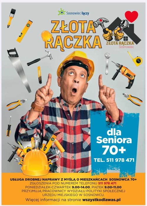 Od 10 kwietnia 2024 r. w Sosnowcu działa program „Złota Rączka dla Seniora”. Seniorzy 70+ mogą bezpłatnie skorzystać z drobnych napraw w domu.