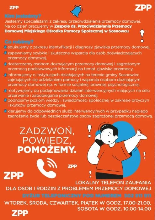 Zespół ds. Przeciwdziałania Przemocy Domowej Miejskiego Ośrodka Pomocy Społecznej rozpoczyna realizację programu pod nazwą „Zadzwoń, powiedz, pomożemy”, którego celem jest zapewnienie bezpłatnej, skutecznej i bezpiecznej linii telefonicznej.