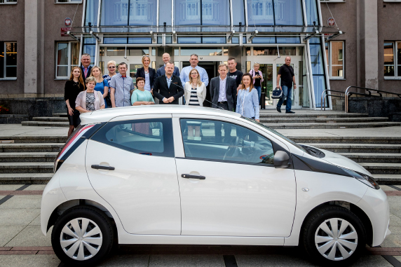 Każdy mieszkaniec Sosnowca, który na dzień 31 grudnia 2017 roku wskazał nasze miasto jako miejsce zamieszkania, oraz rozliczył podatek dochodowy w sosnowieckim Urzędzie Skarbowym, miał prawo wziąć udział w losowaniu nagrody głównej: samochodu Toyota Aygo, oraz nagród dodatkowych: 5 czytników Kindle oraz 5 rowerów. Szczęśliwym posiadaczem nagrody głównej: Toyoty Aygo została pani Ewelina, która dziś oficjalnie odebrała kluczyki do auta.