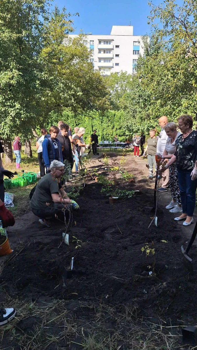 W kolejnej części były warsztaty praktyczne. Seniorzy i uczniowie wspólnie sadzili między innymi: maliny, jeżyny, borówki.