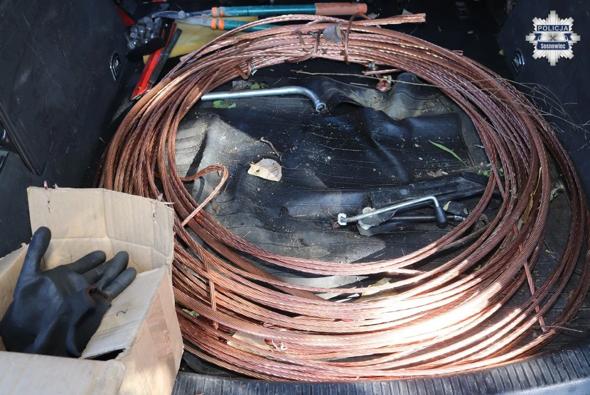 Kilka godzin po zgłoszeniach policjanci z Wydziału Kryminalnego Komendy Miejskiej Policji w Sosnowcu, patrolując ulicę Andersa, zwrócili uwagę na samochód marki Volkswagen, którego kierowca na widok radiowozu zachowywał się nerwowo. Mężczyzna przepakowywał z bagażnika różne przedmioty do drugiego auta – marki Audi. Okazało się, że był to 37-letni mieszkaniec Sosnowca. W samochodzie funkcjonariusze znaleźli miedziane liny trakcyjne oraz różnego rodzaju elektronarzędzia.