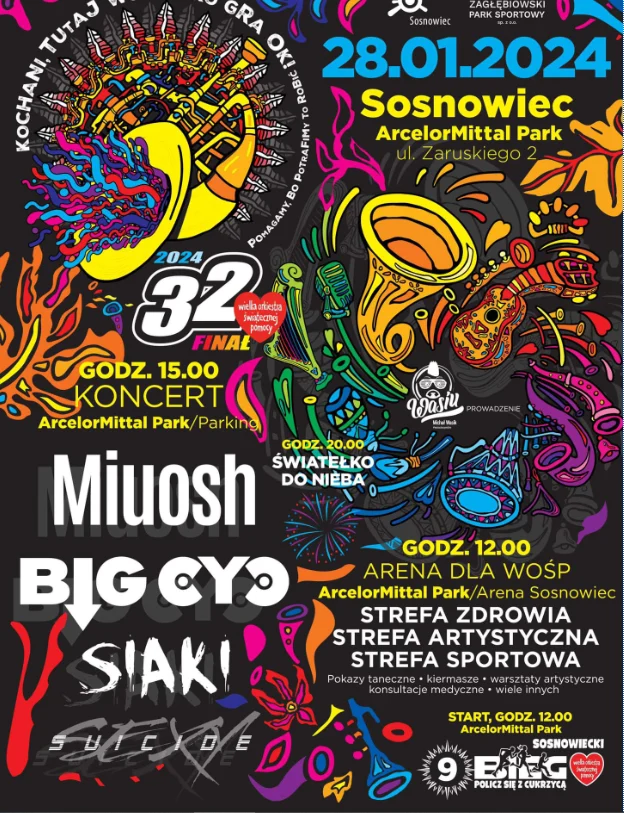 – Tradycyjnie już Sosnowiec gra z Orkiestrą. Jak zwykle przygotowaliśmy szereg imprez towarzyszących, nie zabraknie występów gwiazd, wśród nich m.in.: Miuosh, Big Cyc i Łukasz Samburski, uczestnika programu Voice of Poland, a tradycyjnie o godz. 20.00 będziemy świadkami „światełka do nieba”. Zachęcam mieszkańców do wspólnej zabawy. Pamiętajcie, że Orkiestra gra do końca świata i o jeden dzień dłużej, a Sosnowiec razem z nią – podkreśla Arkadiusz Chęciński, prezydent Sosnowca.