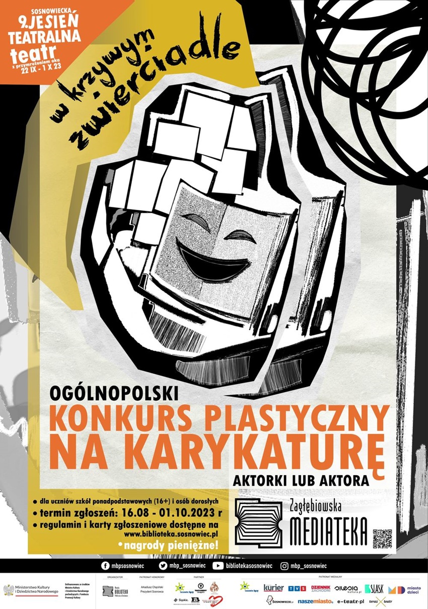 Miejska Biblioteka Publiczna w Sosnowcu – Organizator 9. Sosnowieckiej Jesieni Teatralnej – serdecznie zaprasza uczniów szkół ponadpodstawowych i osoby dorosłe do udziału w konkursie plastycznym na karykaturę znanej i rozpoznawalnej aktorki lub aktora ze świata filmu i teatru.