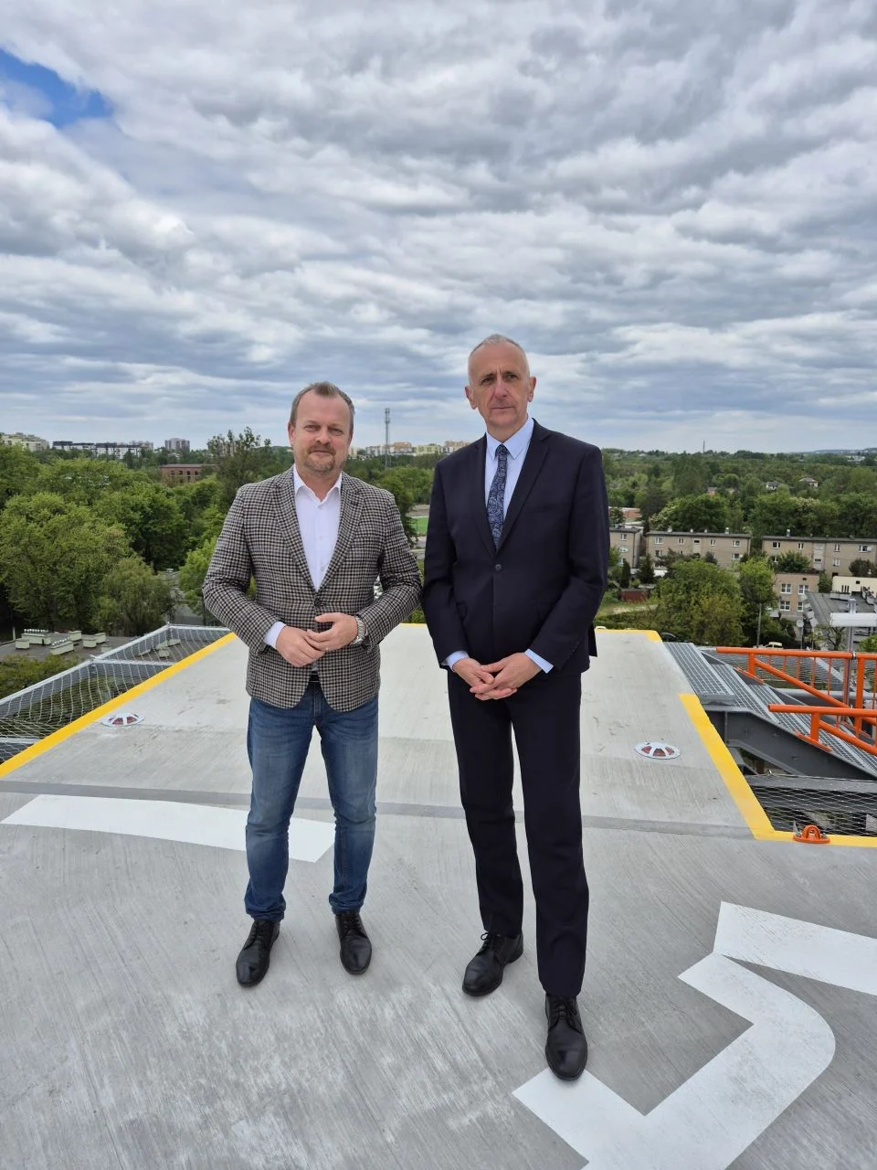 Nad dachem nadbudowanej części budynku wybudowano lądowisko wyniesione dla śmigłowców ratunkowych wraz z klatką schodową o powierzchni 515m kw. i szybem windowym umożliwiającym bezpośredni transport pacjenta z oddziałów szpitalnych na płytę lub z płyty lądowiska do oddziałów.