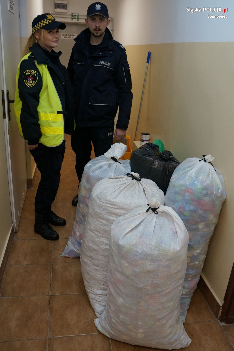 Policjanci i strażnicy miejscy zbierają plastikowe nakrętki, karmę, smycze oraz kołdry i koce – wszystko to, co pomoże bezdomnym zwierzętom przetrwać najtrudniejszy dla nich okres, jakim jest zima. W sosnowieckim schronisku stale przebywa około 150 psów. Tym razem dary do schroniska przekazali sierż.szt. Wojciech Dobczyński wraz z głównymi organizatorami bieżącej zbiórki: sierż szt. Maciejem Kopij z Wydziału Prewencji sosnowieckiej komendy oraz mł. strażnik Ewą Gała ze Straży Miejskiej. Funkcjonariusze obu formacji systematycznie gromadzą plastikowe nakrętki, karmę, smycze, obroże, zabawki oraz tak ważne koce i kołdry, które pomagają przetrwać bezdomnym zwierzętom zimę.
