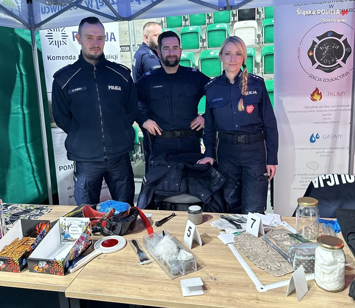 Podczas wydarzenia, uczestnicy mogli odwiedzić stoisko Komendy Miejskiej Policji w Sosnowcu, gdzie czekała na nich moc atrakcji, które przyciągały zarówno najmłodszych, jak i seniorów. Z naszymi gośćmi rozmawialiśmy o bezpieczeństwie. Nie zabrakło również osób zainteresowanych służbą w Policji, którym przybliżono, jakie kryteria trzeba spełnić, by móc nosić policyjny mundur. Najmłodsi mogli przyjrzeć się z bliska, na czym polega praca technika kryminalistyki. Dzieci chętnie pozowały do zdjęć z przewodnikami psów służbowych oraz ich czworonożnymi przyjaciółmi.